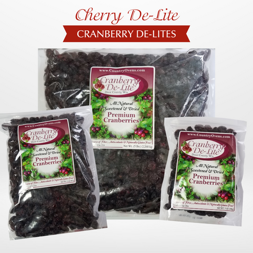 Description Dried Cranberry De-Lites Made with Wisconsin Cranberries. Processed and Pack right here in Door County, WI.