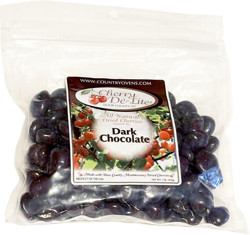Description Dark Chocolate Covered, Door County, Dried Tart Cherries.Made with Door County, Montmorency Dried Cherries. Processed and Pack right here in Door County, WI.