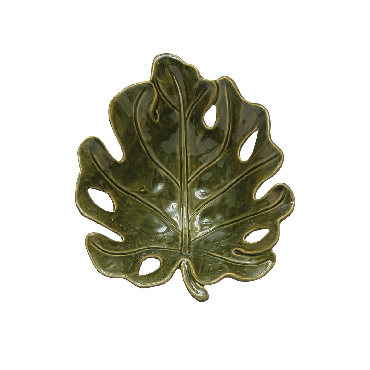 7"L x 6"W x 2"H Stoneware Leaf Shaped Bowl, Reactive Glaze, Green (Each One Will Vary).