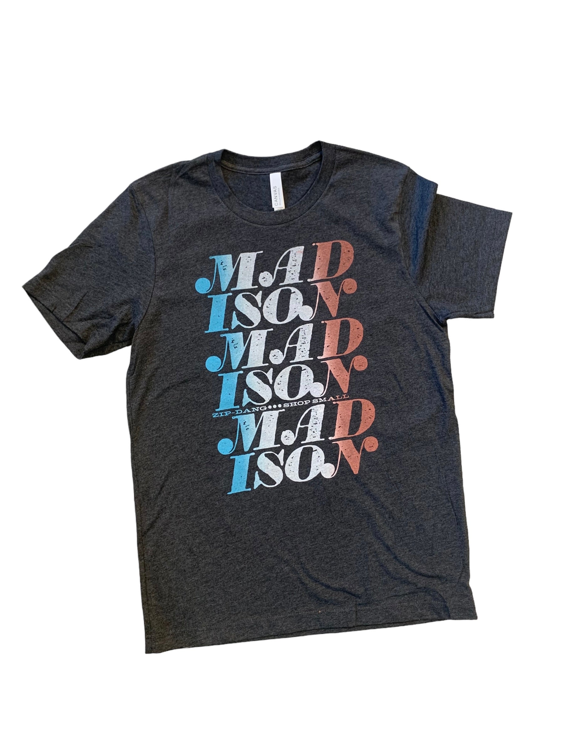 Shirts are our standard heathered vintage tri-blend - super soft, medium weight, and won't shrink50% polyester, 38% combed ringspun cotton, 12% rayon, super soft tee, screen printed by us in Madison WI